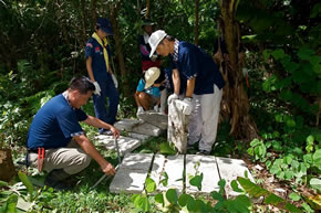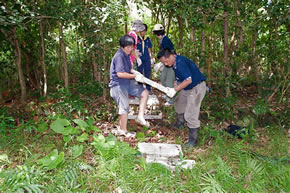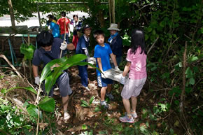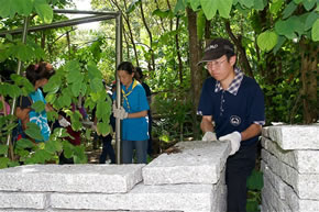 我們是到處種樹砌石,動手實做的保育團隊,12年前從新店直潭國小排下第一片生態石板,今天「以在地樹種及自然工法塑造原始風貌,將美麗景觀蘊涵豐富生態。」,一個神秘組織默默友善地球舉動,早已讓人印象深刻。本團隊在臺灣中部以北的許多地方,採行「自然理則」、「美學觀念」、「生態工法」等方式製作步,,該地區的原生植物、蝴蝶、獨角仙、螢火蟲、青蛙都能穩定繁衍,低成本,庶民做生態,引領了綠建設風潮。