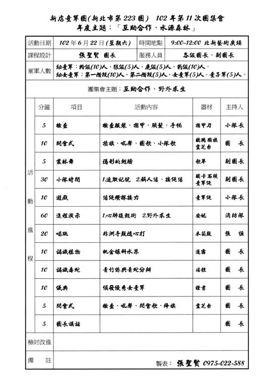 102/6/22童軍標準團集會(免費活動,需報名,保險、交通、餐飲自理)