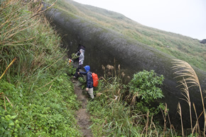 檢視這條路線--勸濟堂往黃金池;全程不休息三小時走完,平緩路徑一半,其餘為下坡,陡降坡已結繩或做梯改善,雖有幾處手腳並用,四歲小朋友走起來沒有問題了。12/13行程預估;10:00進登山口,15:30出台2線79.6公里處,台金公司前791公車至基隆夜市。歡迎來試走! 張聖賢敬邀0975-022-588