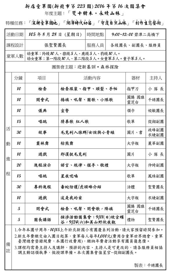 新店童軍團每年八至九月學年度正式招生,8/28(星期日)/9:00~12:00碧潭團集會,歡迎參加,捷運「新店站」二高橋下碧潭入口處,8:45集合。